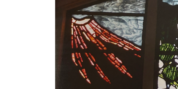 As is true with Mary, the Sacred Heart of Jesus is one with His islands, and these last windows are charged with the life and light of Jesus–heart ablaze, yet finally resolved into the dark mysterious water, the source of all life.
